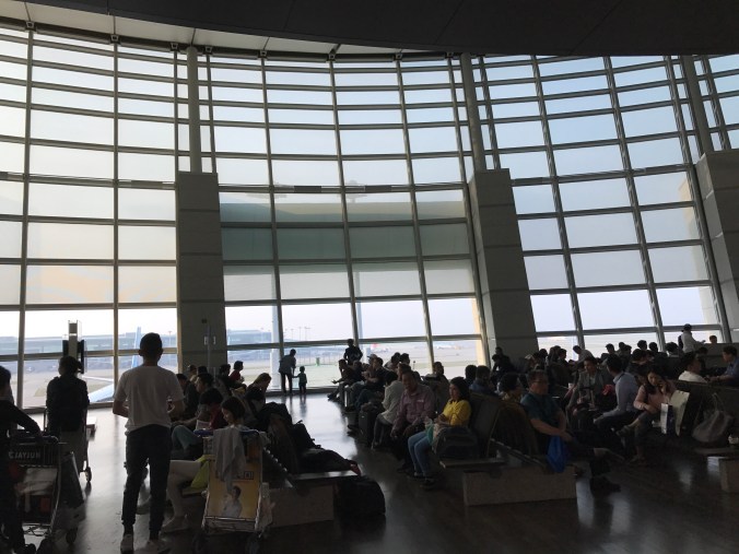It is 6 pm in Seoul and the airport is busy. Happy Birhday to Shap, my wonderful husband and travel companion. It has the feel of any other airport in the world, even a Dunkin Donuts is here. I would recommend Korean Air to anyone; clean, polite and business class was a god send. Found an amazing discount and it was worth the extra money. Not that much more. Sleeping prone actually does help your outlook.